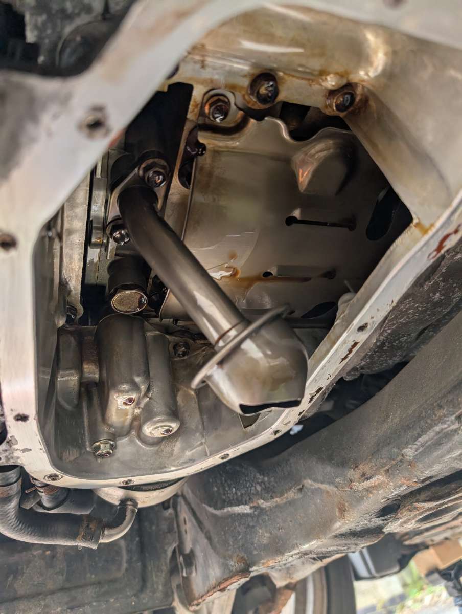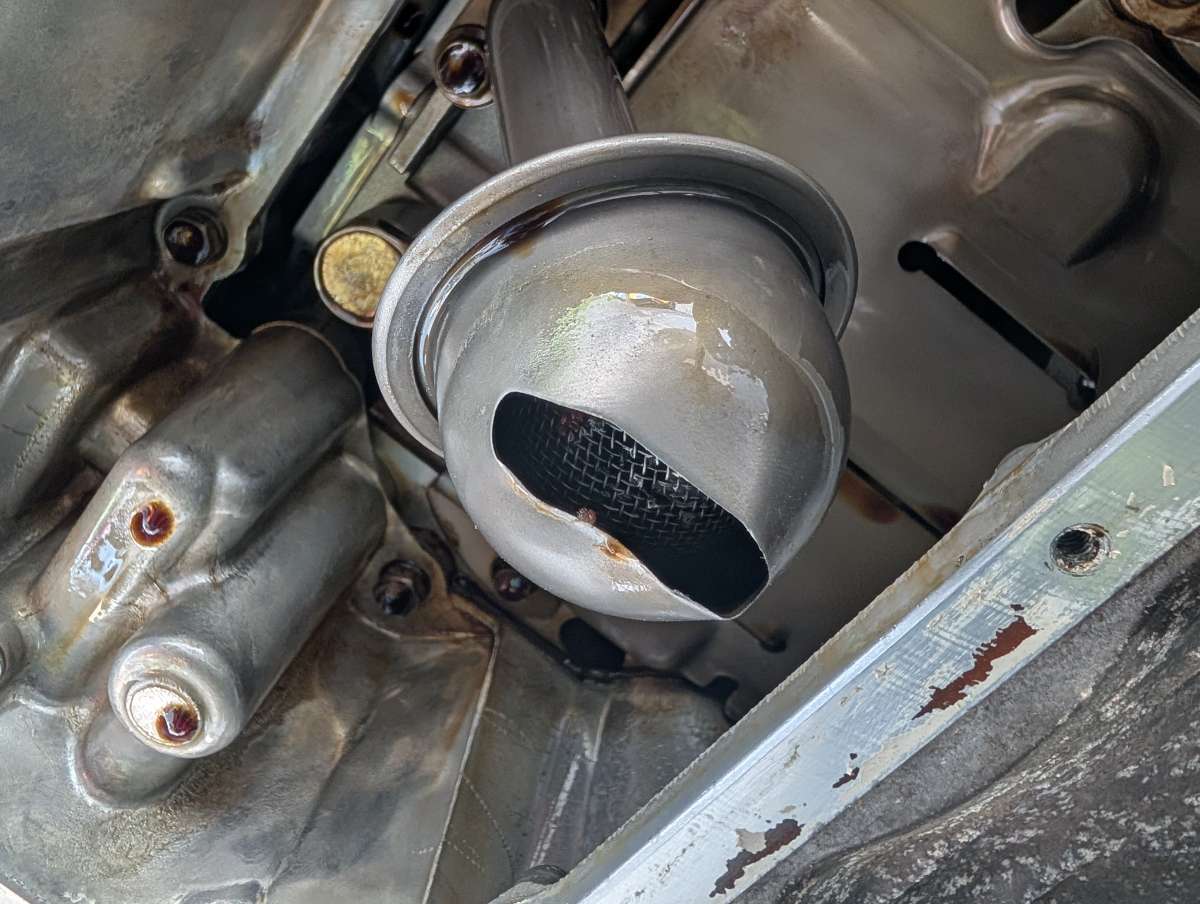 2. I did the stupid thing where the jack slipped and hit the sump. Pan is damaged and I have a new one - but my new oil pickup strainer is still on order from Torquen. Decided to take the lower pan off anyway and the strainer tube itself is fine, only a wee ding in the shell at the top (see attached photos). Does anyone have any opinions on if this is too much damage?