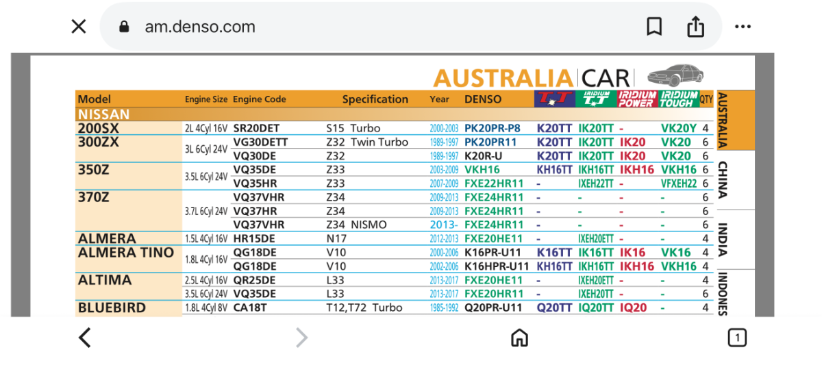 2. Hi, Quick question, apart from the price, what’s the difference between these two Denso plugs for the HR engine? Manual shows FXE22HR11, Denso catalogue lists them and Denso iridium TT IXEH22T Car currently has the TT ones fitted, just curious if to swap them out for the originals or go with the same again?
